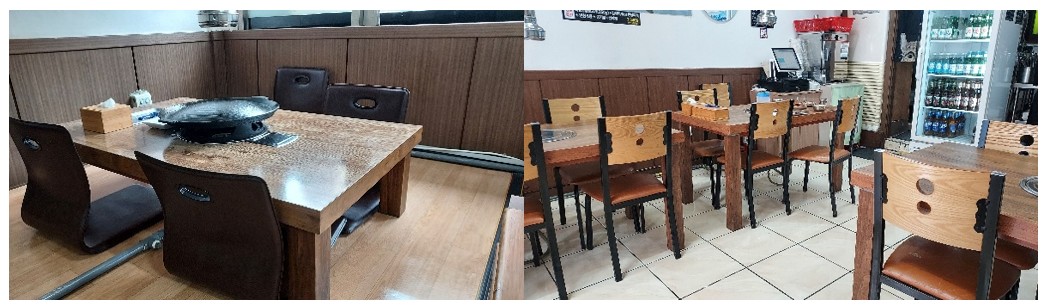 내부는 고깃집 특유의 환풍구가 설치된 깔끔한 원목 테이블로 꾸며져 있었어요.