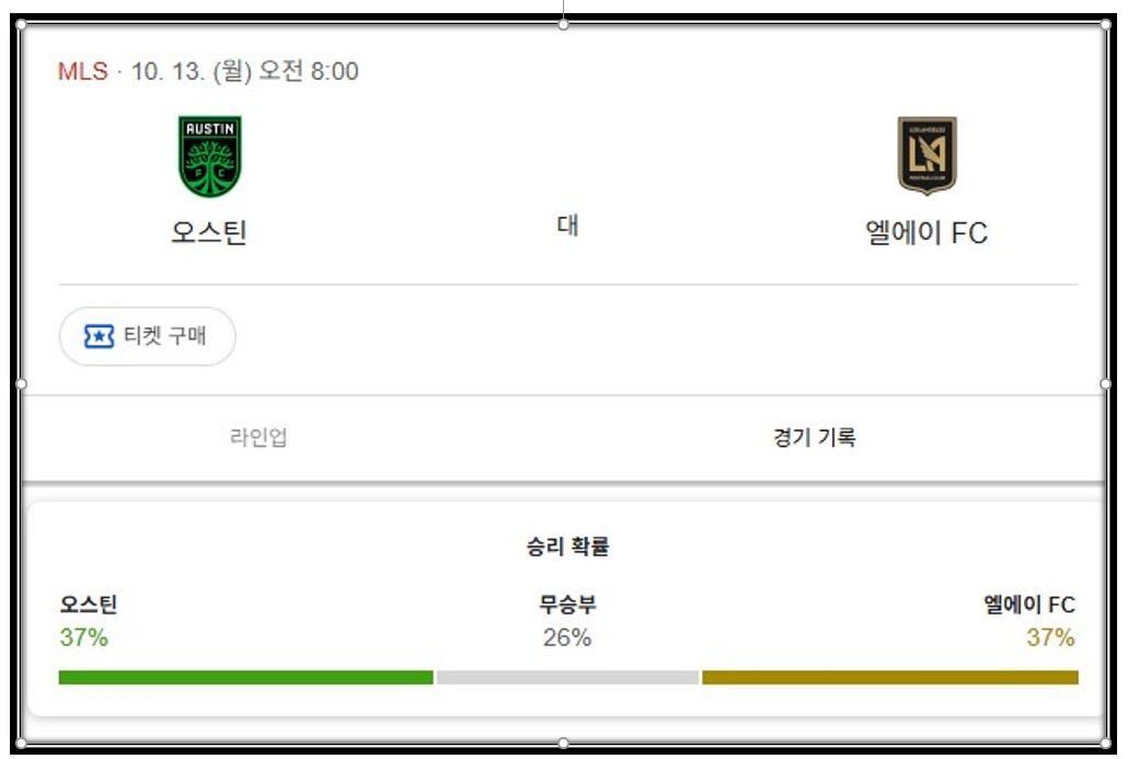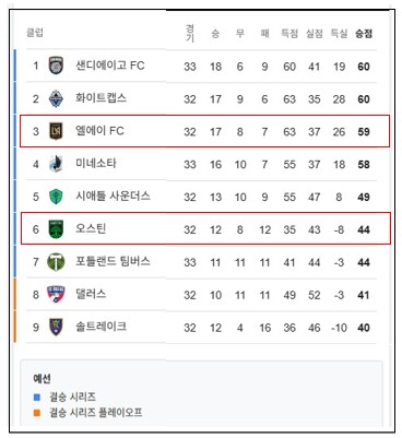 ※LAFC는 3위, 경기 상대인 오스틴 FC는 6위.