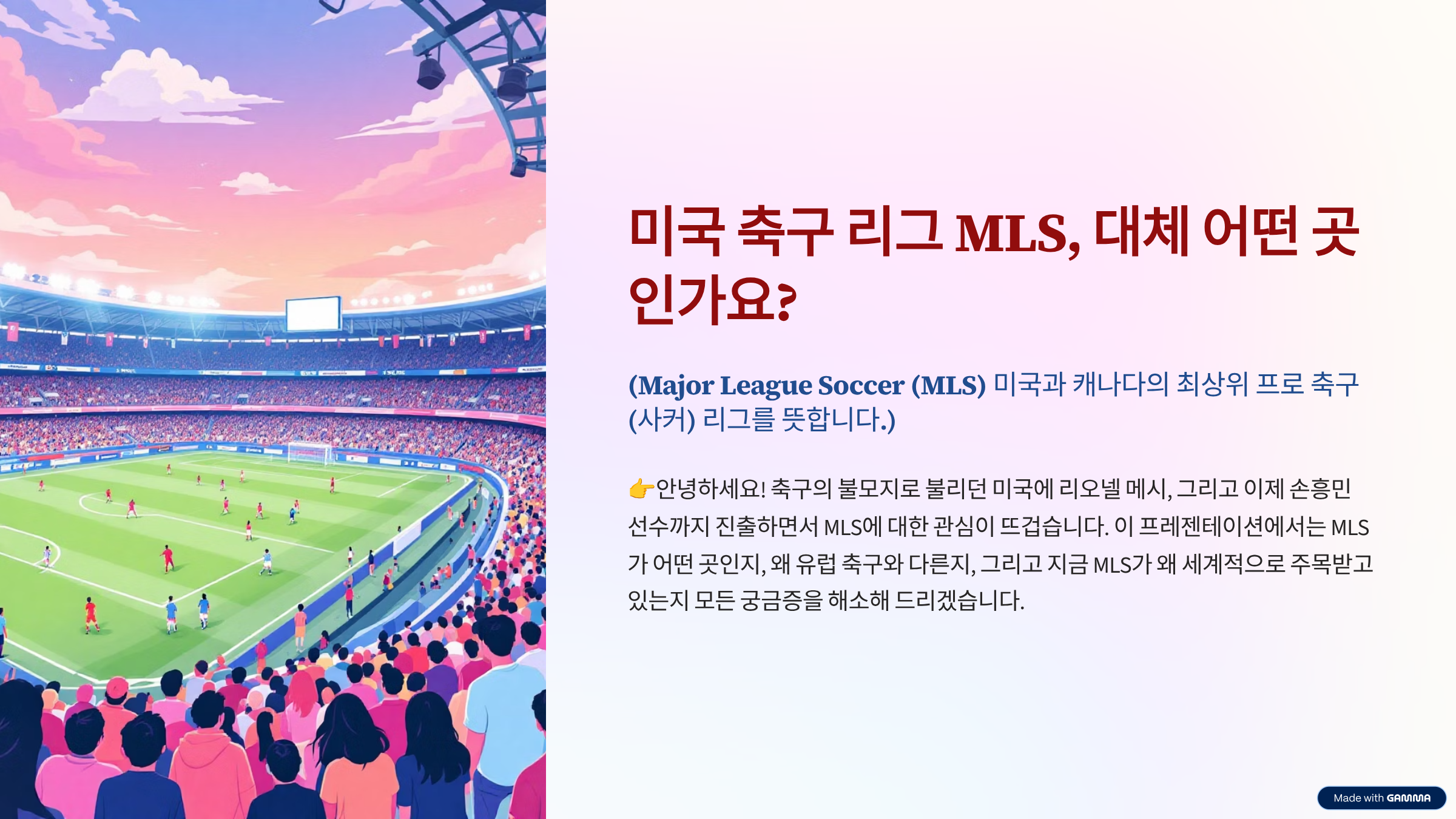 이 글을 통해 MLS가 어떤 곳인지, 왜 유럽 축구와 다른지, 그리고 지금 MLS가 왜 세계적으로 주목받고 있는지 모든 궁금증을 해소해 드리겠습니다.