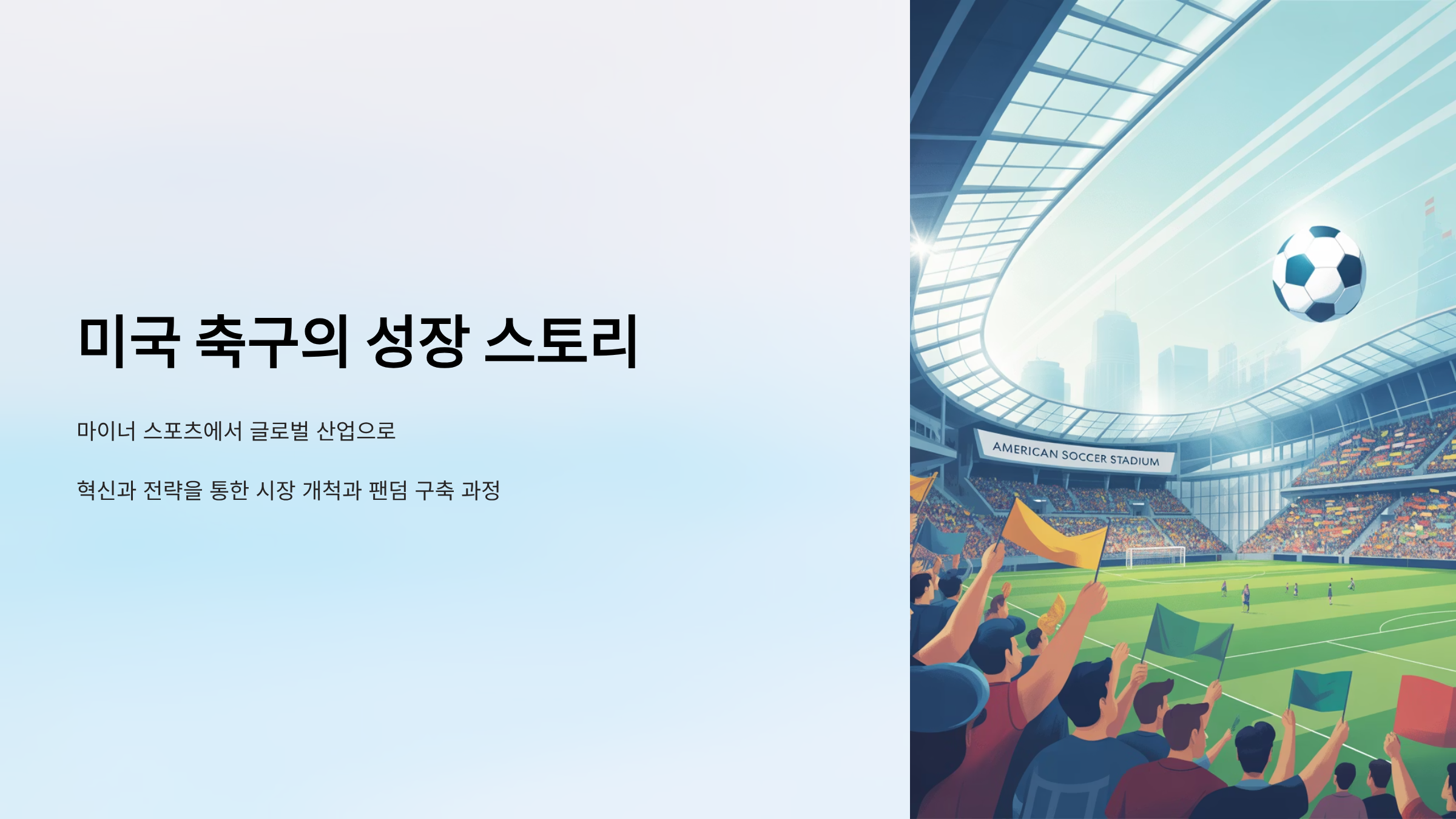 안녕하세요, 구독자 여러분! 혹시 '미국 축구'하면 어떤 이미지가 떠오르시나요? 아마도 야구나 미식축구에 비해 '덜 인기 있는 스포츠', 혹은 **'마이너 스포츠'**라는 인식을 가지고 계실지도 모릅니다. 하지만 미국 축구는 지난 수십 년간 이 이미지를 벗어나기 위해 치열하게 노력해왔고, 이제는 전 세계 스포츠 팬들의 주목을 받는 거대한 산업으로 성장했습니다.